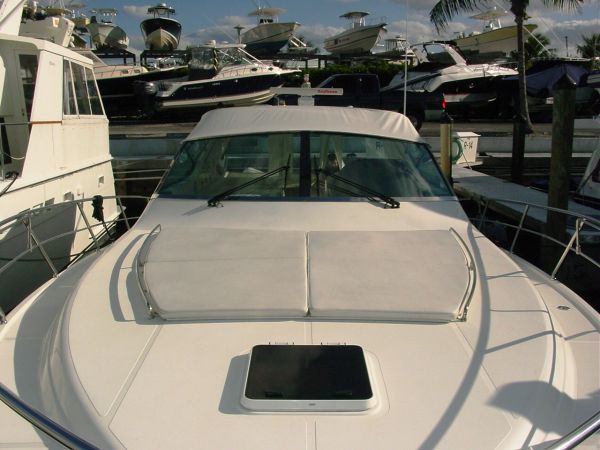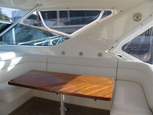 En cubuerta tiene el espacio para el capitán, un comdero para 6 personas de media luna bajo sombra y una silla de pesca grande, esto da comodidad a la hora de pesca en mar abierto. En la proa que es la parte de adelante tiene un área acolchonada bastante grande para tomar el sol.