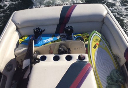 La lancha Tige de 23 pies modelo 97 con motores 2008 es del tamaño y la potencia ideal para hacer Wakeboard en Cancún,