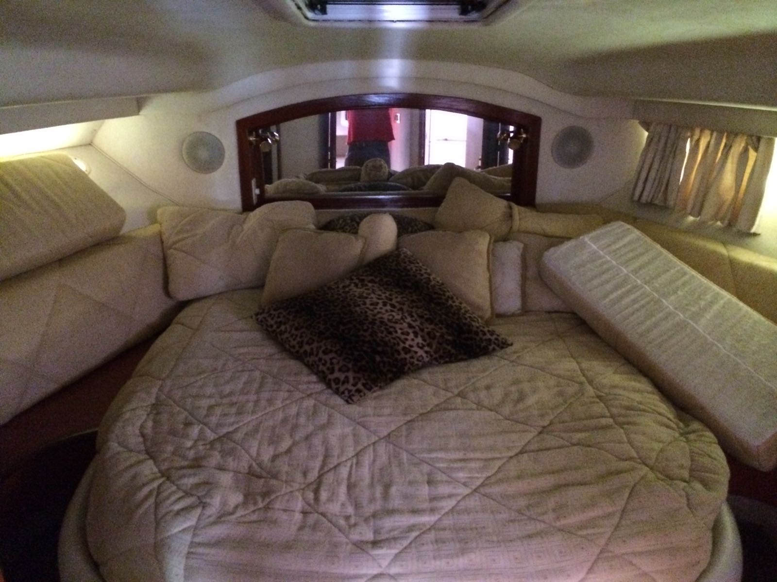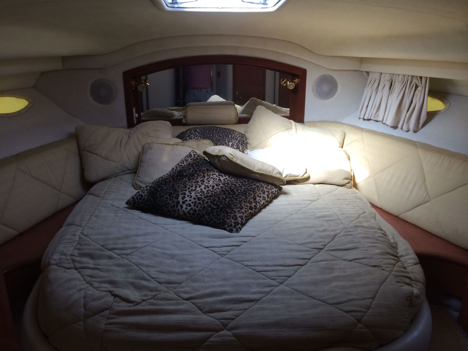 Es un yate que cuenta con 3 cabinas, la principal con una cama matrimonial y su baño privado, las otras dos comparten baño con el resto del yate y cuentan con camas individuales.