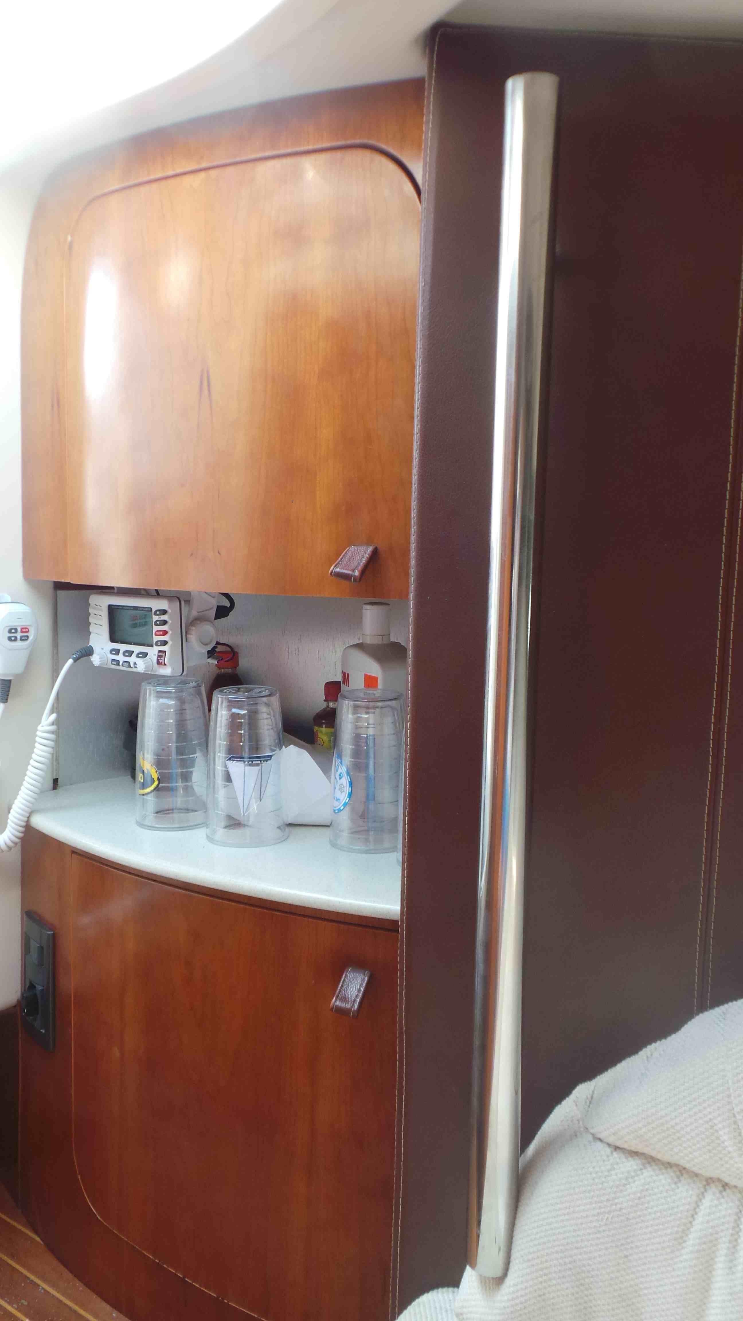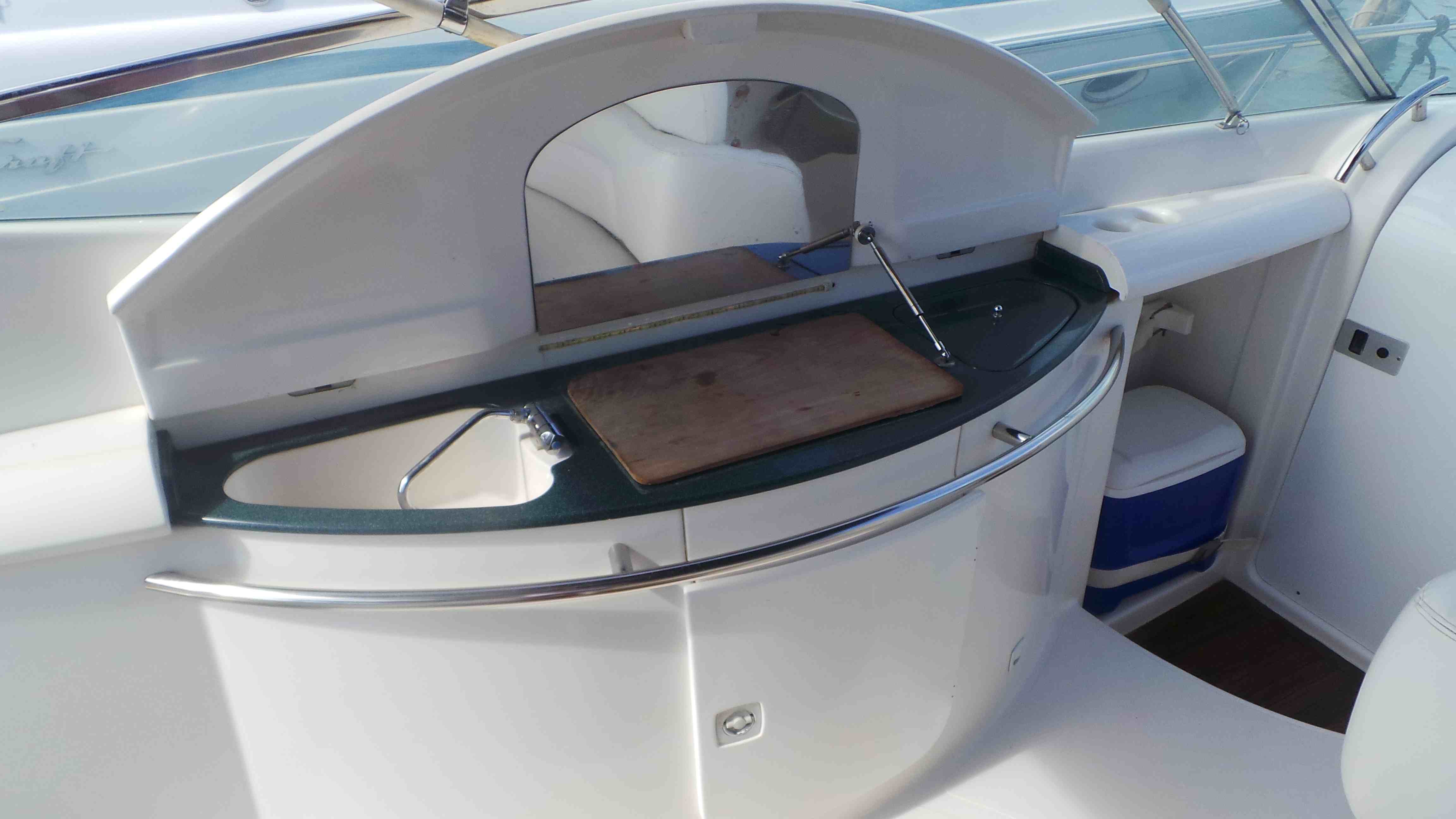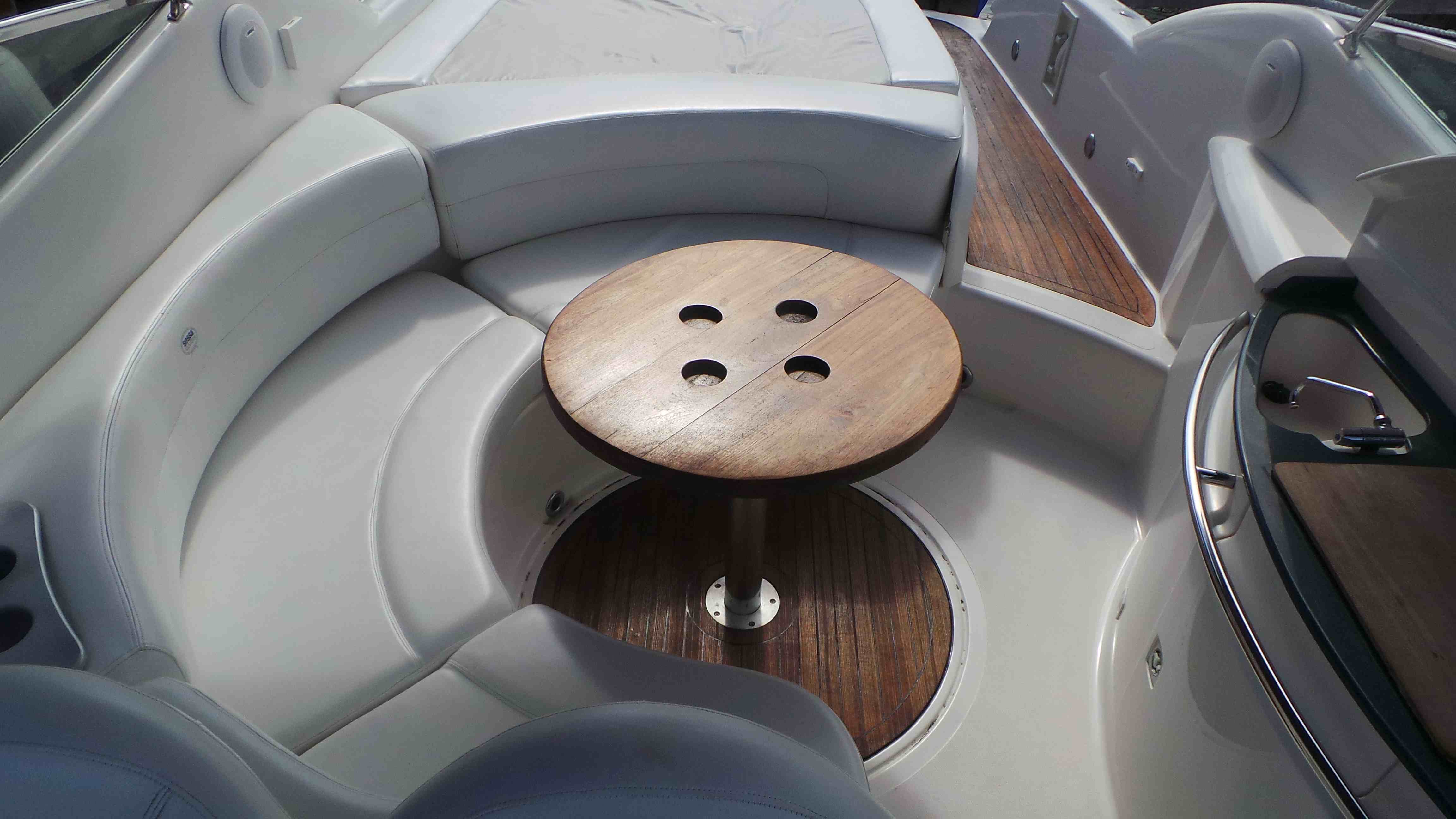 El Sessa cuenta con dos motores y una cabina con una cama matrimonial, una cocineta pequeña, una sala de media una y un baño completo. todo el interior cuenta con aire acondicionado.