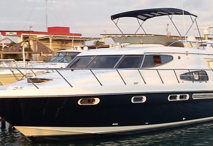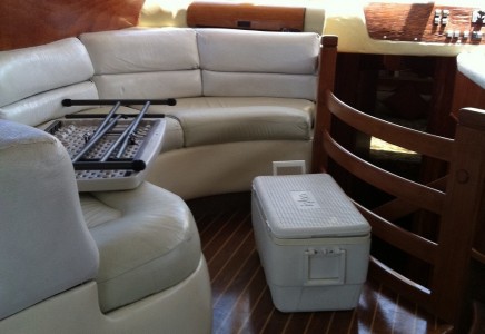 El yate Sealine de 51 pies de renta en Cancún es un yate de tamaño medio, que tiene como ventaja su capacidad. es uno de los pocos yates en renta en Cancún que cuenta con capacidad para 27 pasajeros.