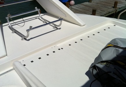 El yate Sealine cuenta con Flydeck que es una terraza en la parte superior que se encuentra al aire libre, en la proa que es el frente del yate tiene un área con colchones para acostarse bajo el sol y en la popa tiene espacio para las hieleras y un poco para bailar.